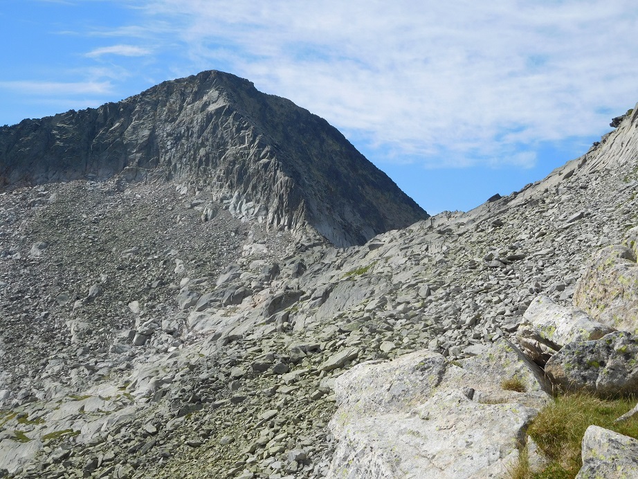 Contournement par la gauche, le passage est assez évident et est cairné. Vue sur le pic de Montabone: