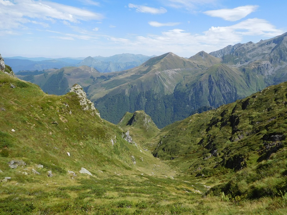 A un replat, vue sur le col entre Certascan et Montabone, direction les laquets à 2583 m.