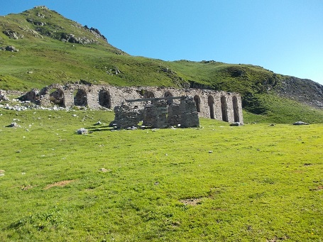 Arrivée au port de Salau, les ruines de la station de débardage du bois.