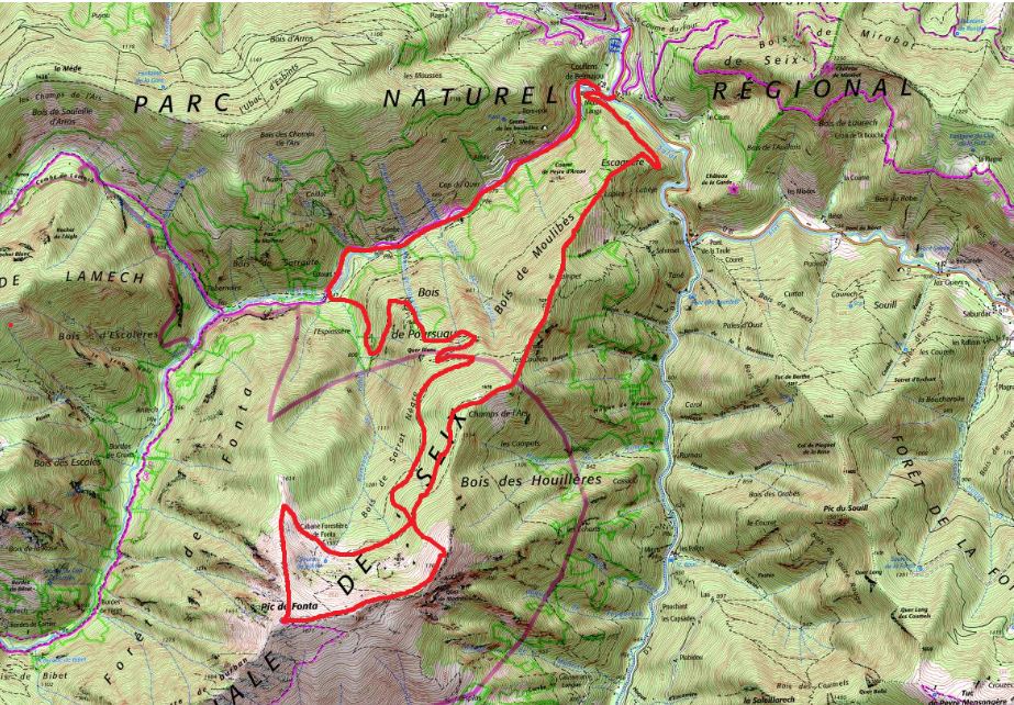 Sur un chemin improbable, montée au pic de Fonta à partir de Moulin Lauga (Seix) et retour par Estours.