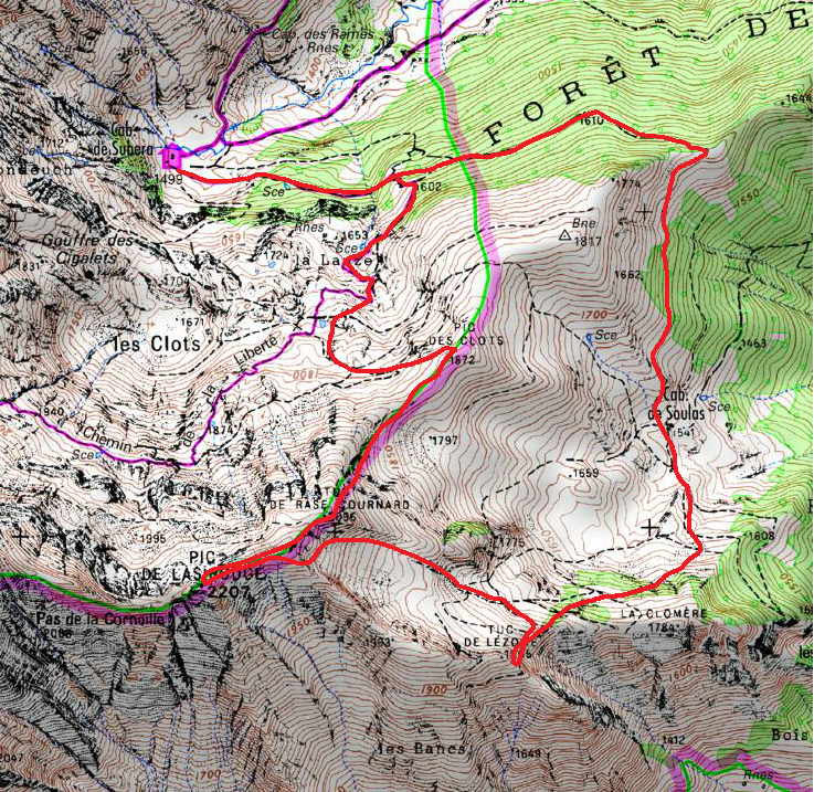 Le tracé à partir de la cabane de Subera: