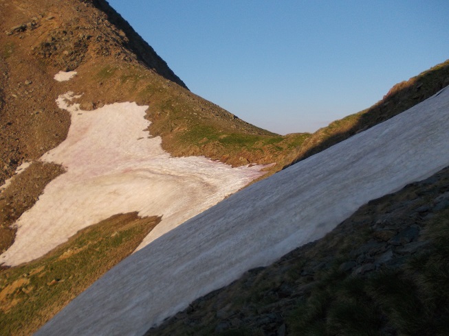 Je suis obligé de contourner le névé très dur.