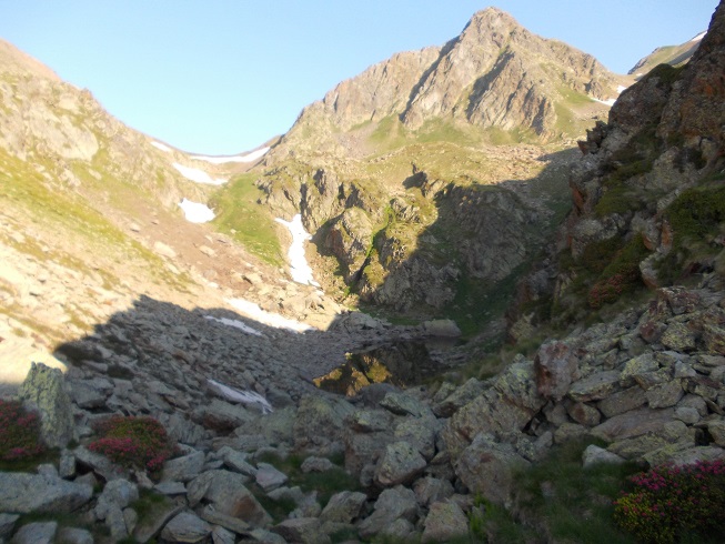 Petite galère ensuite pour la descente vers la Pleta del Prat: en l’absence de chemin, je me trompe de passage et doit remonter.