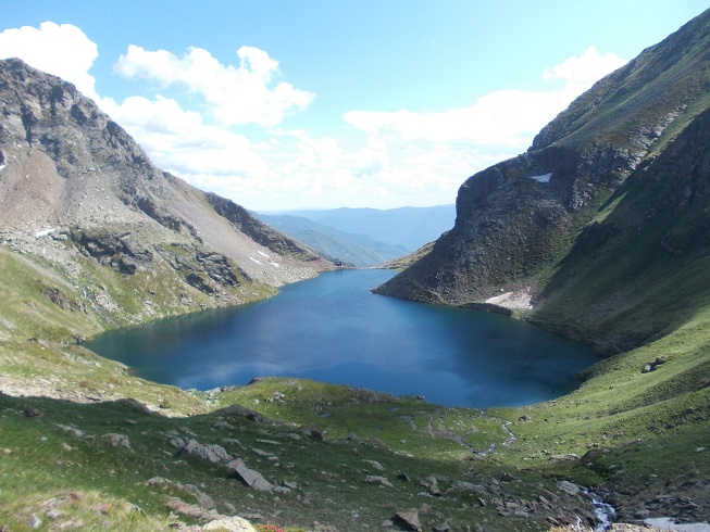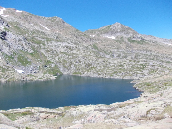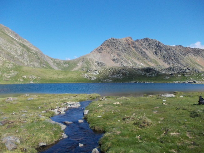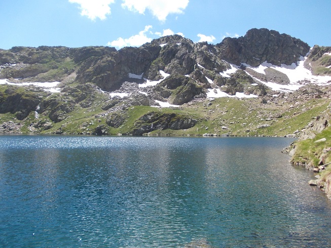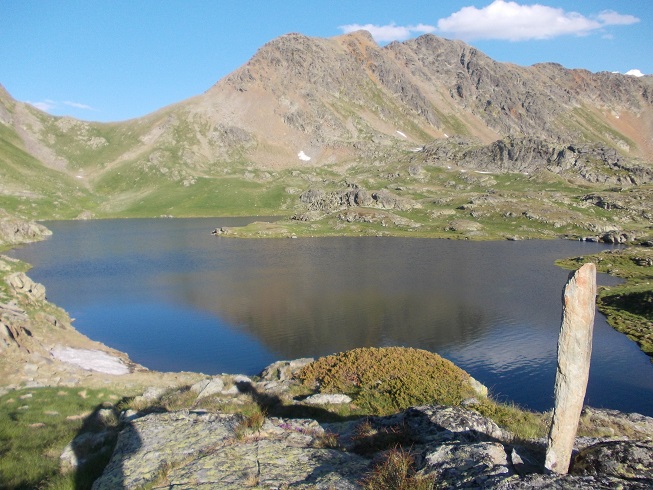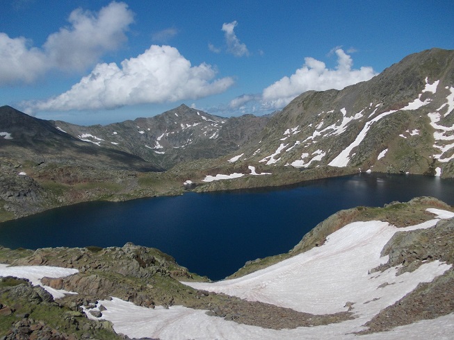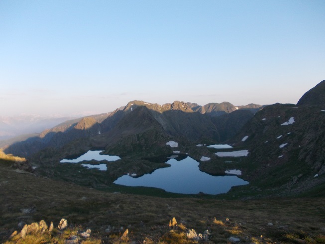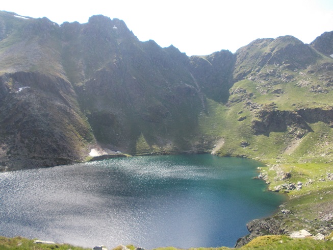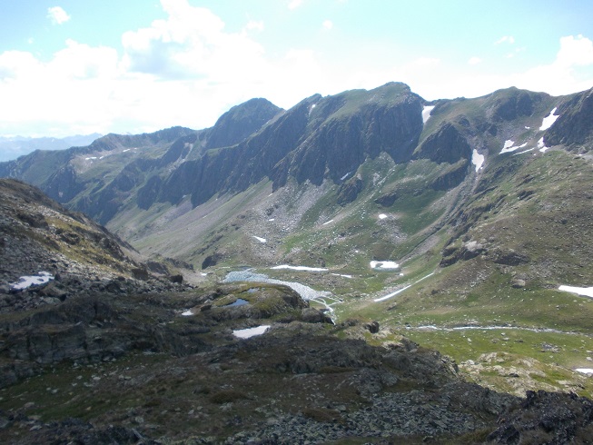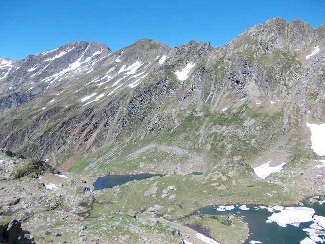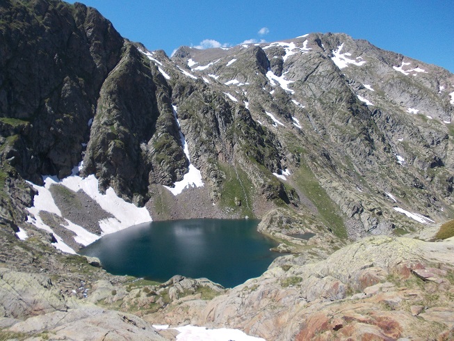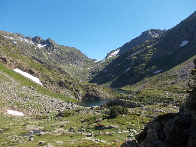 Le col d’où je viens avec le pic de Mariola à gauche et l’estany de Mollas.