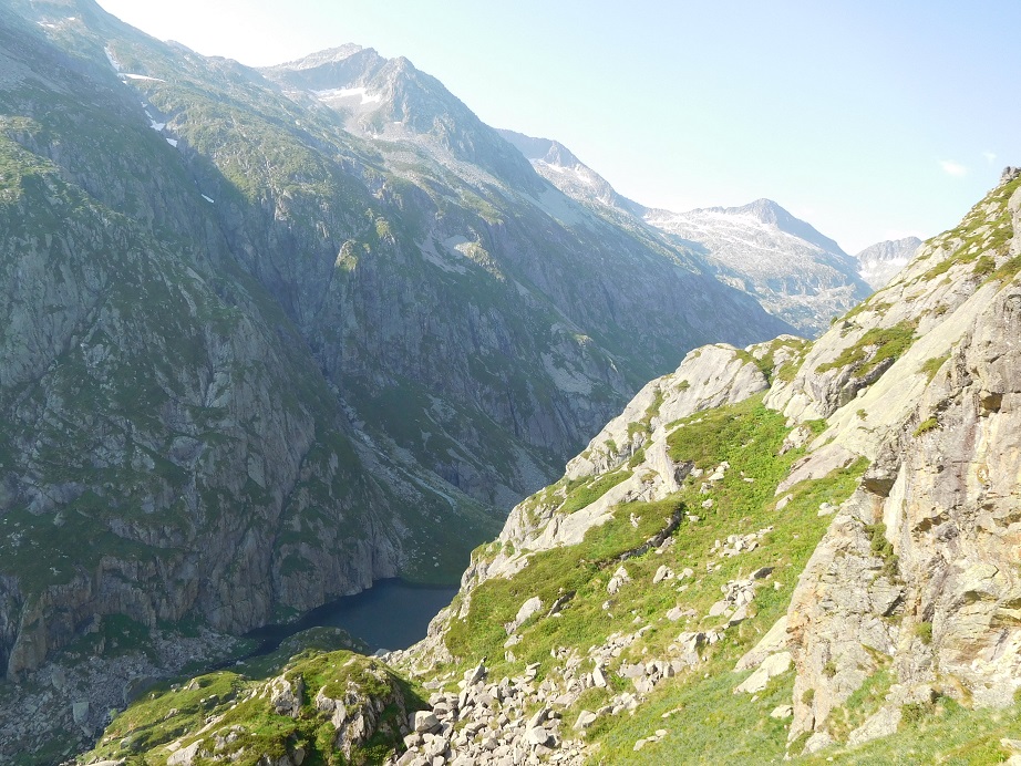 Je m’arrête ici, le passage est probablement possible en descendant sur la droite et en remontant la pente herbeuse que l’on voit à droite .