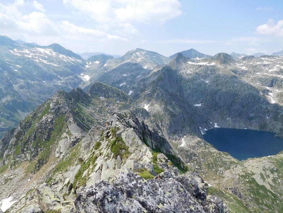 Un peu plus haut, l’étang de las Touetos. On voit à droite le port de Sounou avec à sa gauche le Pic entre les Ports.