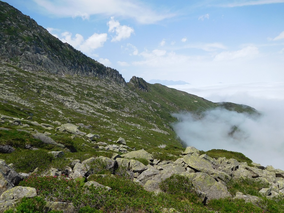 La montée est rude, arrivée sur la crête et le Cap du Pis Blanc: