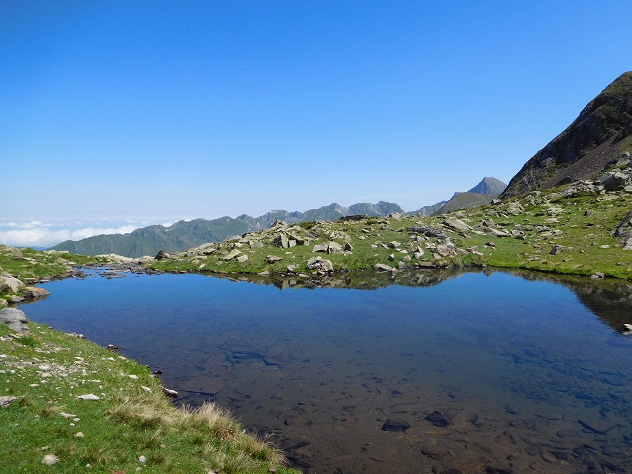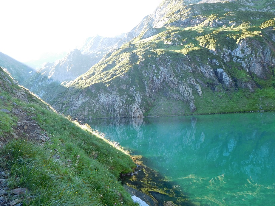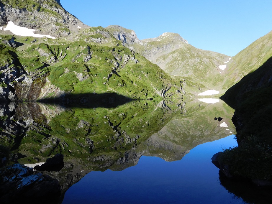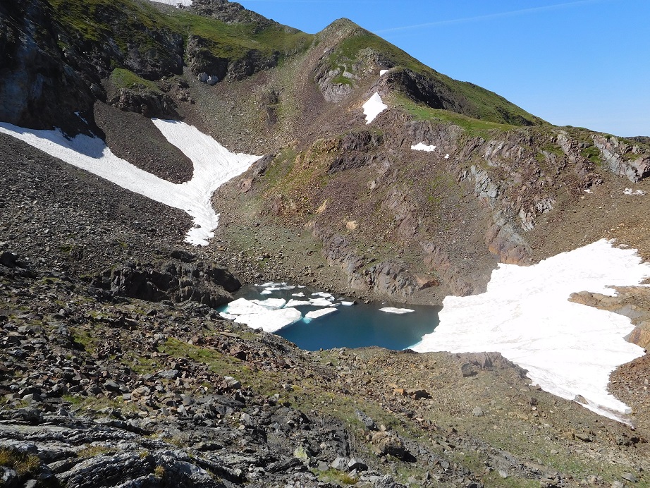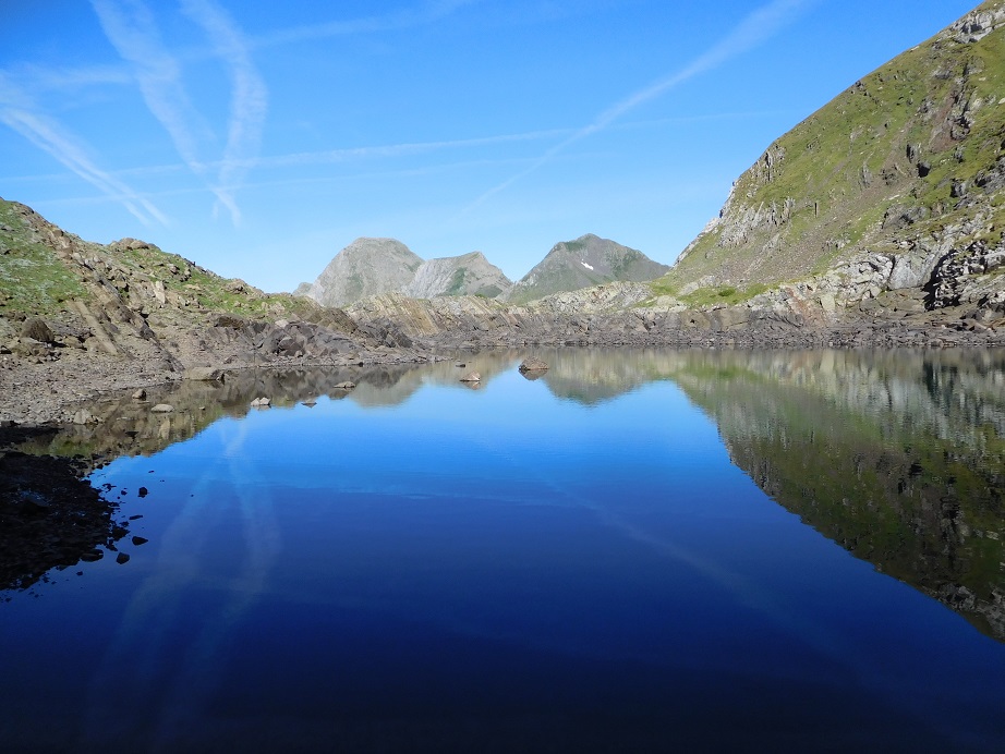 L’étang Renadge d’en bas face au Valier sous le pic des Trois Comtes:
