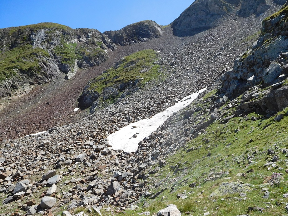 Il faut emprunter le pierrier pour arriver à la brèche. Ca parait assez pentu mais la grimpette est finalement facile.