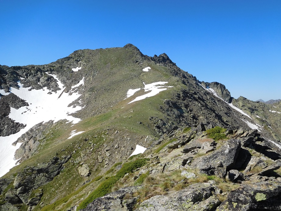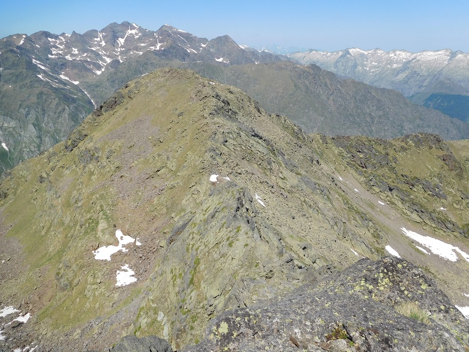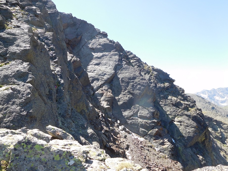 J’arrive au début de la crête partant vers l’ouest, plus beaucoup à monter mais il faut escalader un peu et je ne le sens pas, donc échec à quelques mètres du pic de Malcaras.