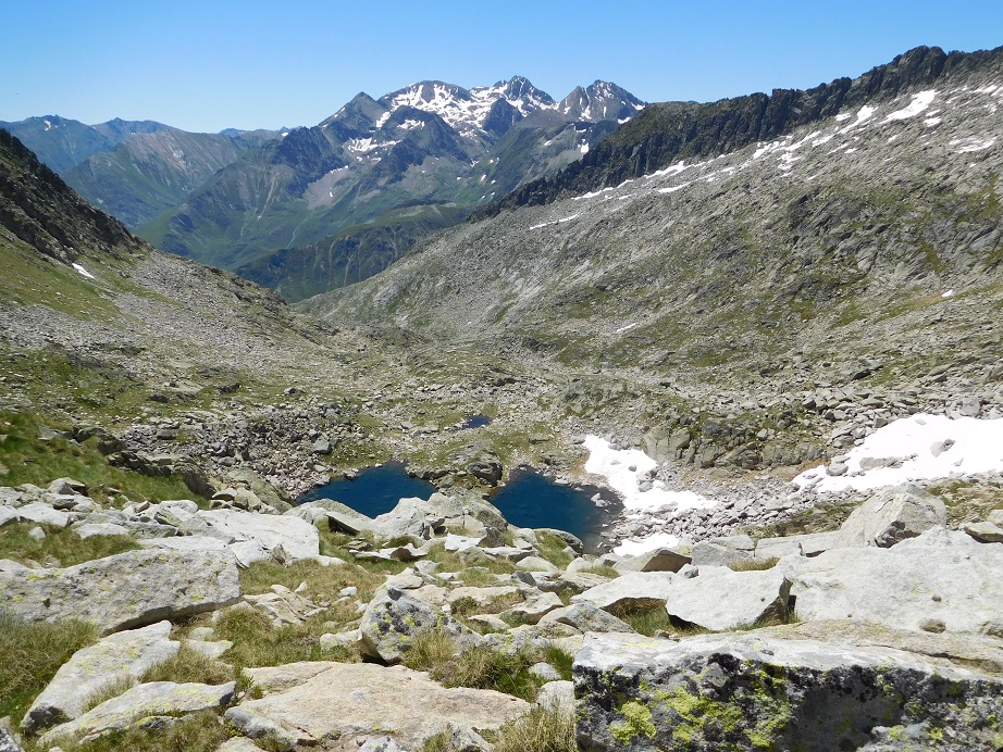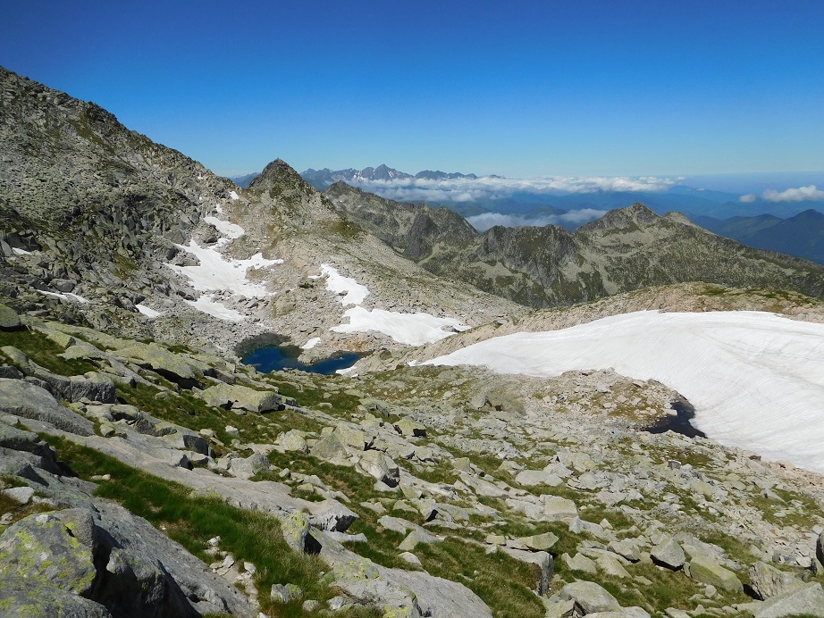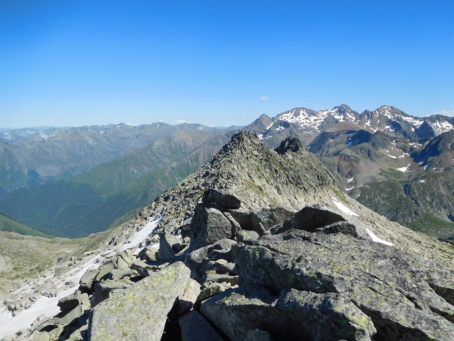 Au col à 2562 m entre le pic de Puntussan et le pic des Trois Comtes, vue sur l’Estat: