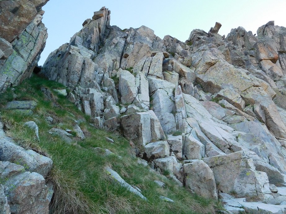 La montée vers la crête est beaucoup plus évidente du bas, elle se termine par un petit couloir herbeux: