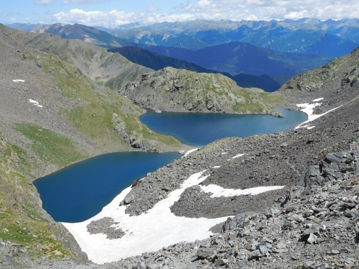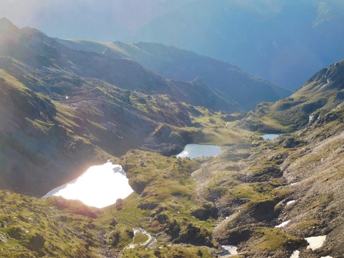 L’idée est de réaliser une boucle en passant par les étangs des Lavans puis de rejoindre le GR11, visiter les nombreux étangs espagnols, passer en Andorre par le Coll dels Forcats puis estanys de Montmantell. Retour direct par le port d’Arinsal.
