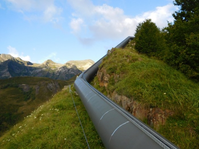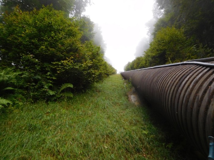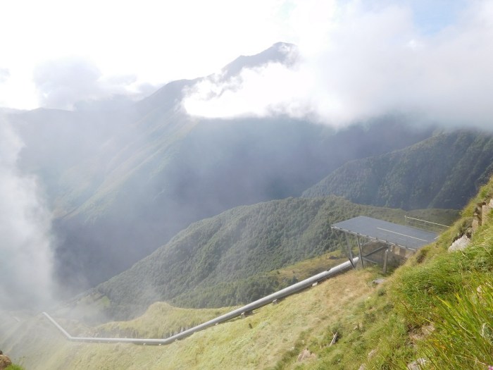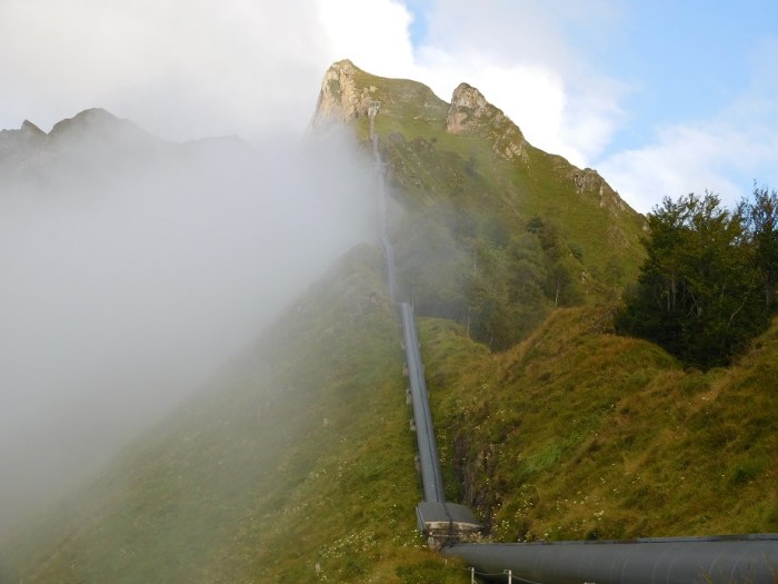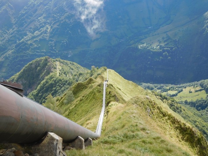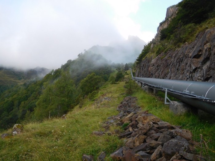 A Eylie, j’emprunte le sentier qui va au col de Cos. A 1040 m, je quitte ce sentier pour monter le long de la conduite d’eau alimentant la centrale électrique. Cette eau vient en partie du barrage d’Uret et principalement de l’étang d’Araing.