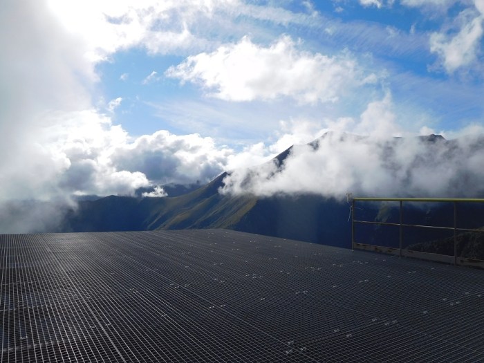 Arrivée à la cheminée, une échelle, pas de clôture: