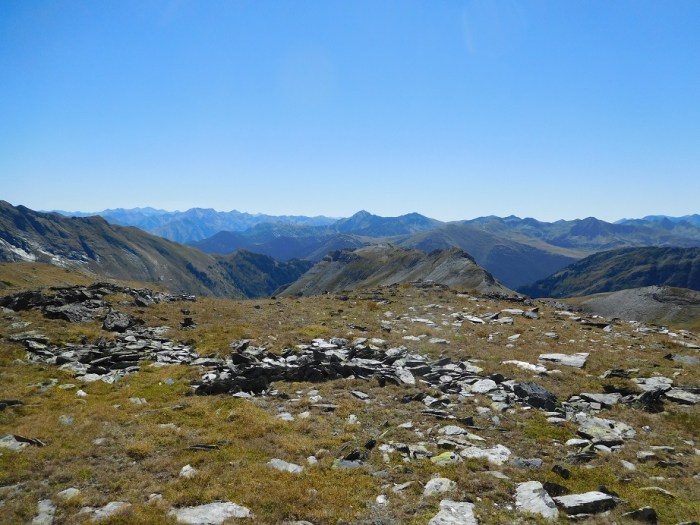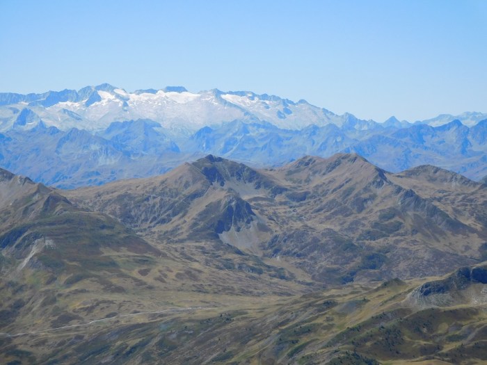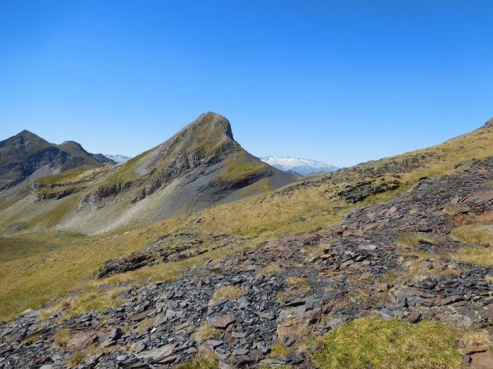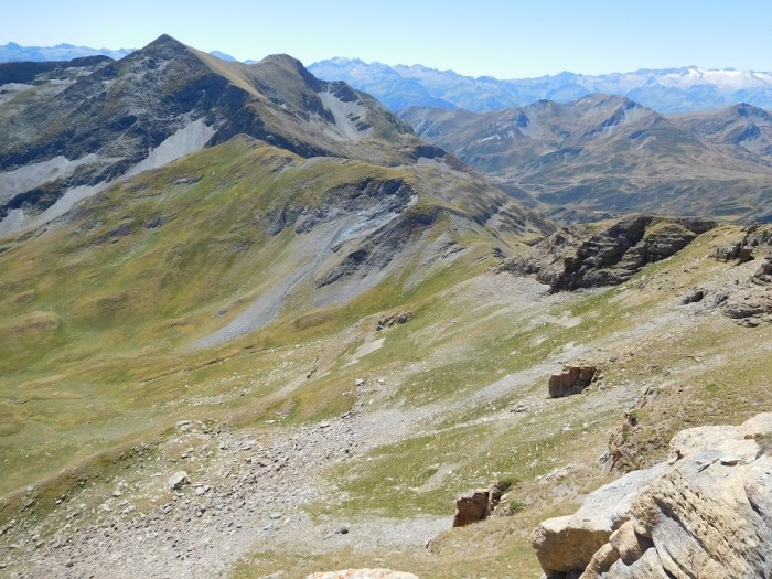 A 2368 m , le pic du Port d’Orle en premier plan et le pic de Barlonguère au fond: