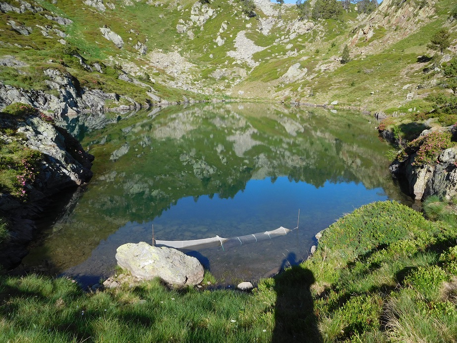 Montée par le riu de Sellente, à la cabane de Sellente AR à l’estany de Rovinets où des filets sont disposés pour capturer les vairons.