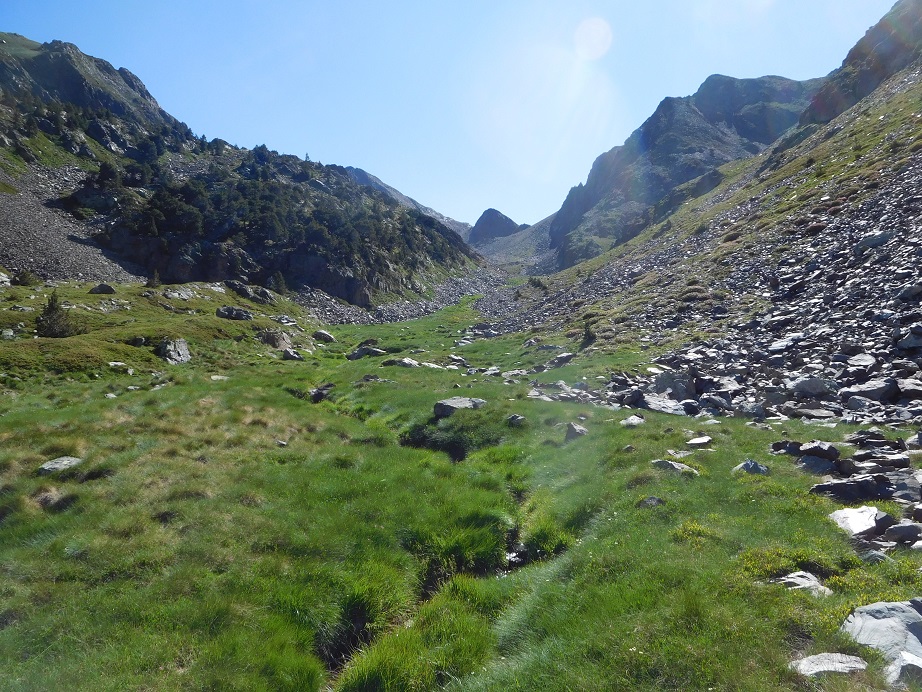 Descente douce au col puis retour vers le riu de Sellente, pas mal de cailloux:
