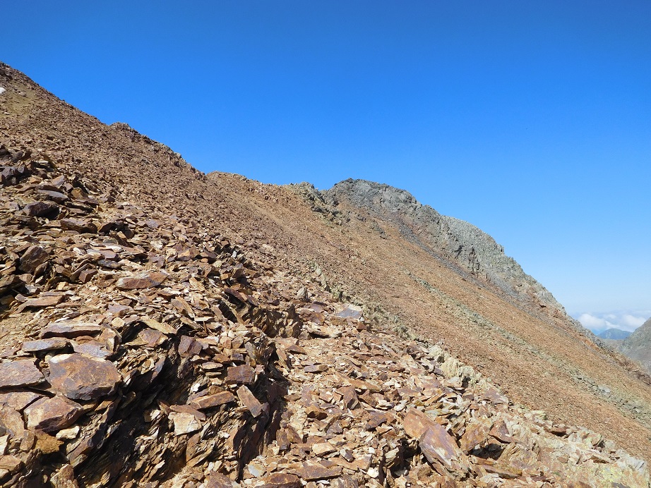 Au col, à 2570 m, il n’est pas possible de descendre coté nord, je prends la crête jusqu’à Serrat de la Llaguna: