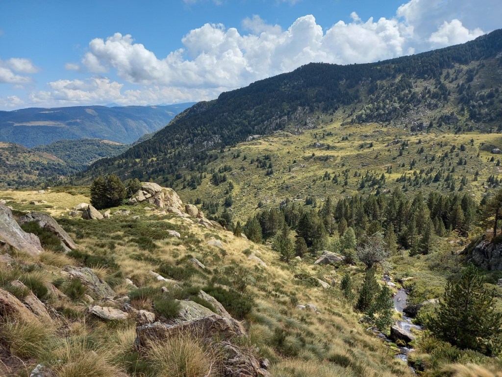 Il faut continuer un peu le GR jusqu’au point 1462 et suivre le ruisseau de Larnoum. Un chemin un peu hésitant au départ, il faut le trouver et ne pas chercher à s’approcher du ruisseau.