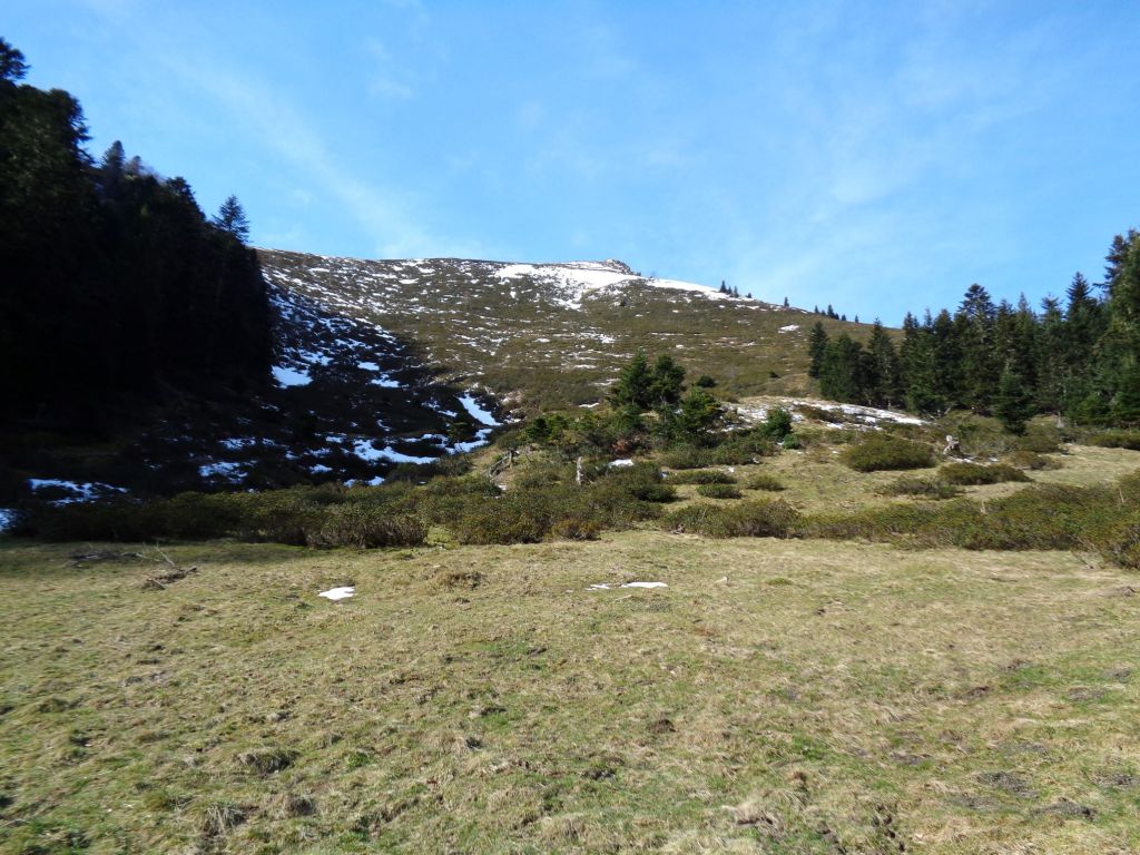 J’arrive rapidement à cette prairie et tout en bas je trouve un chemin un peu aléatoire au début: