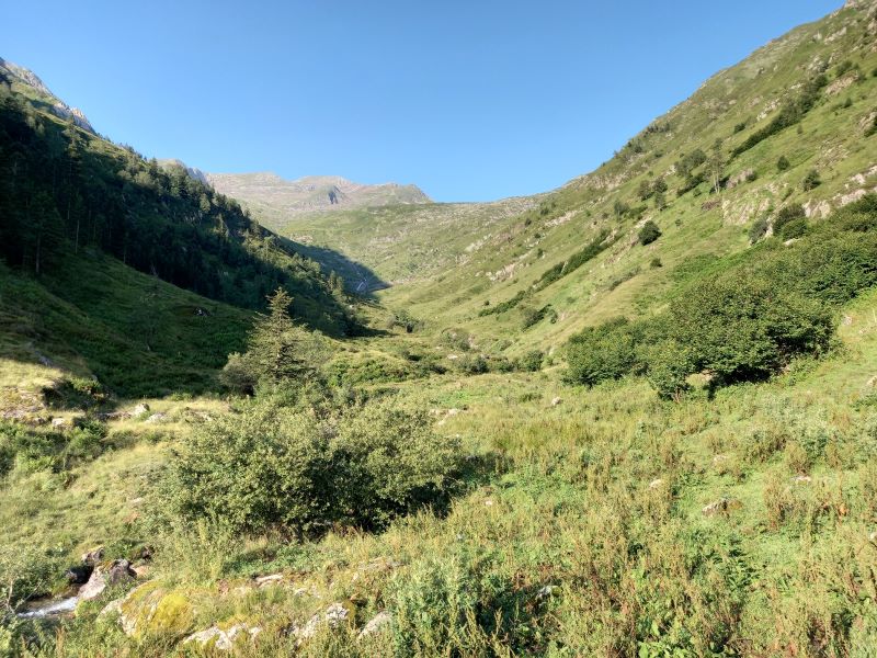 Remontée de la vallée de Larnourm jusqu’à la cabane de Béze. Très belle vallée et très praticable, le sentier est assez bien tracé.